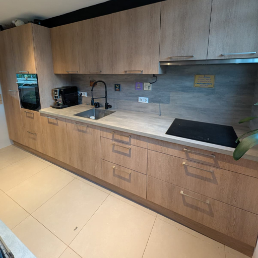 In Hoogeveen kreeg de keuken een moderne update door het wrappen van de fronten in een lichte houtlook. De nieuwe uitstraling brengt rust en zorgt voor een strak geheel dat perfect past bij de stijl van de woning.